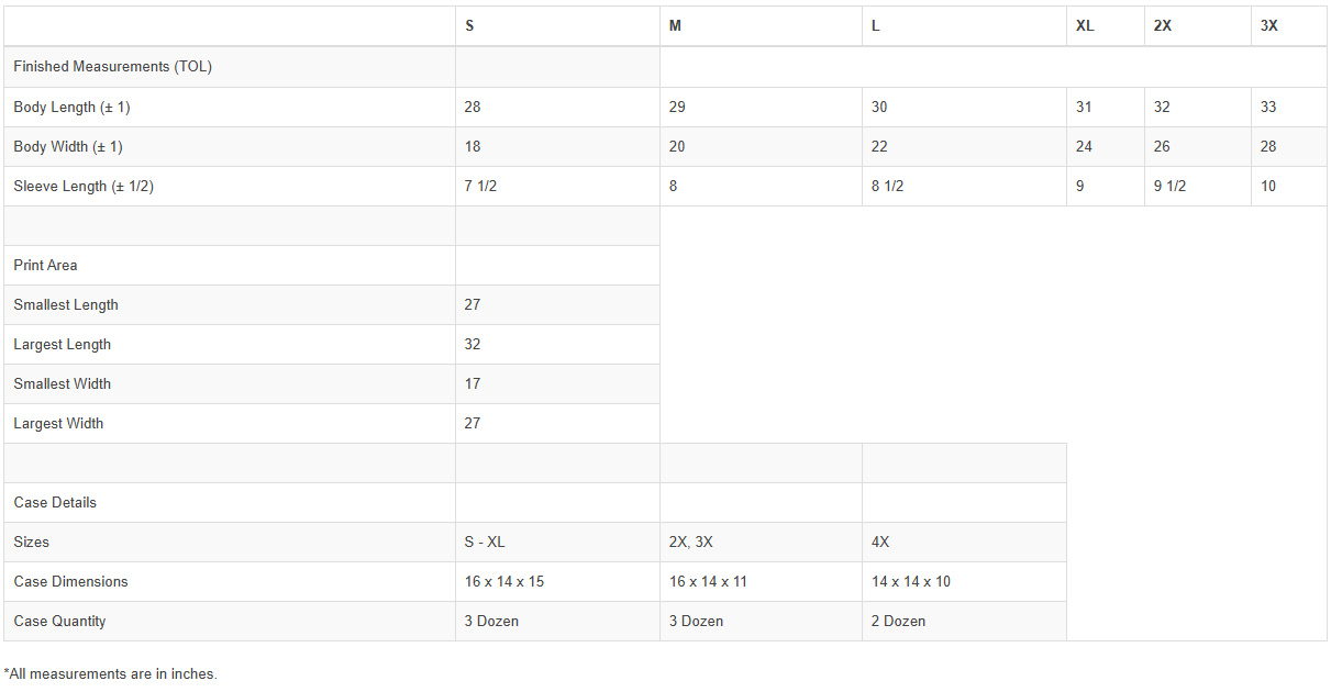 | S | M | L | XL | 2XL | 3XL | |||||||||